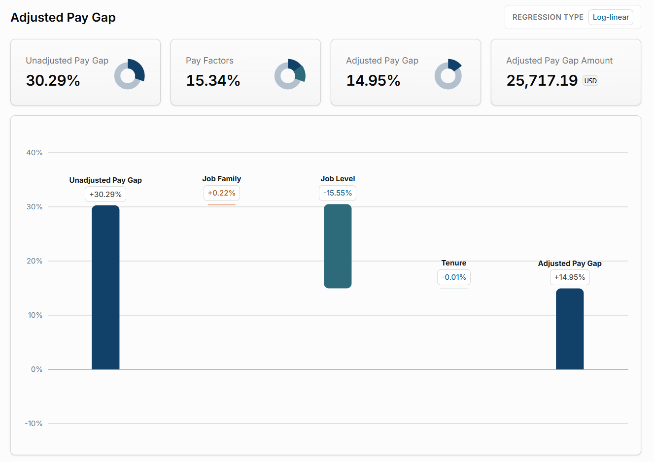 Presenting results this way is very practical. Stakeholders can see, for instance, that "Yes, we have a 10% raw gap, but 8 percentage points of that are due to men and women holding different jobs/levels. The remaining 2% gap is within similar roles and is unexplained." This not only highlights the magnitude of potential pay inequity to address, but also emphasizes longer-term talent management issues (like representation in higher roles) that drive the explained portion. Many HR professionals find this helps focus the conversation: fix the unexplained gap immediately (that's pay equity), and work on the career progression pipeline to reduce the explained gap (that's equal opportunities).